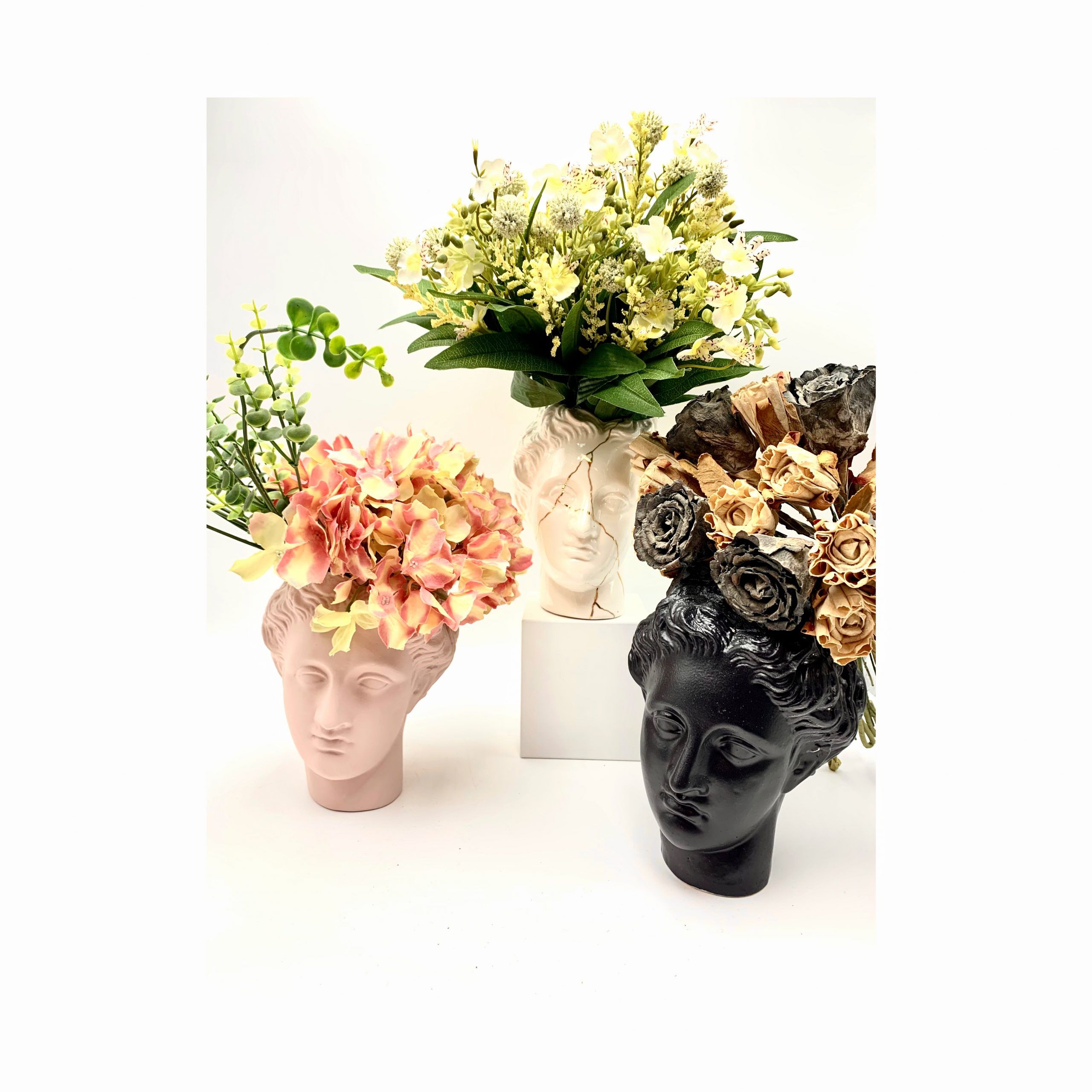 Afrodita florero para flores secas. Sin peana. Color blanco con detalles en oro · kintsugi.