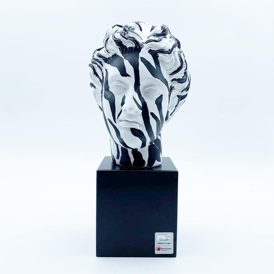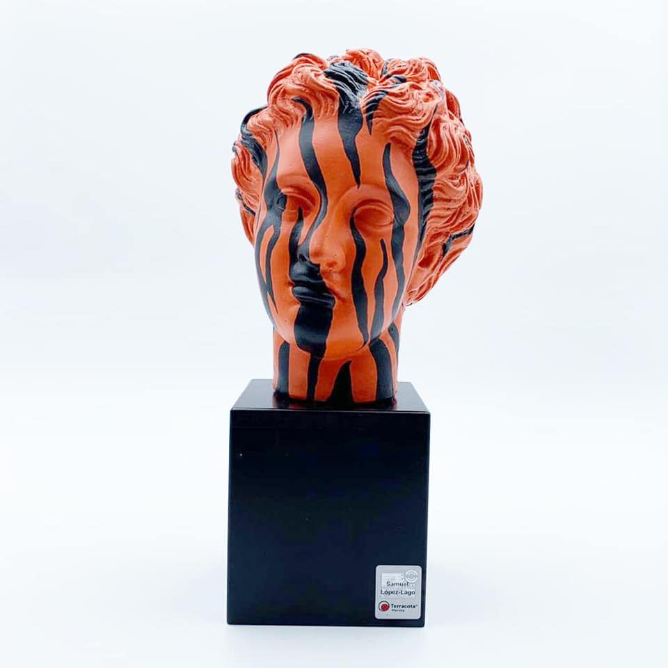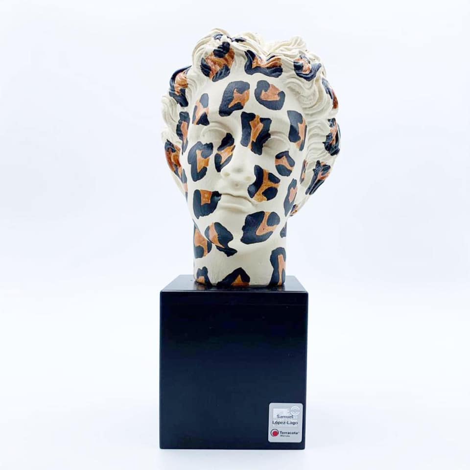 Afrodita sobre peana de madera. 4 modelos de edición limitada (zebra / giraffe / leopard / tiger). Coleccion SecondSkin de Terracota Mérida + Samuel López-Lago.