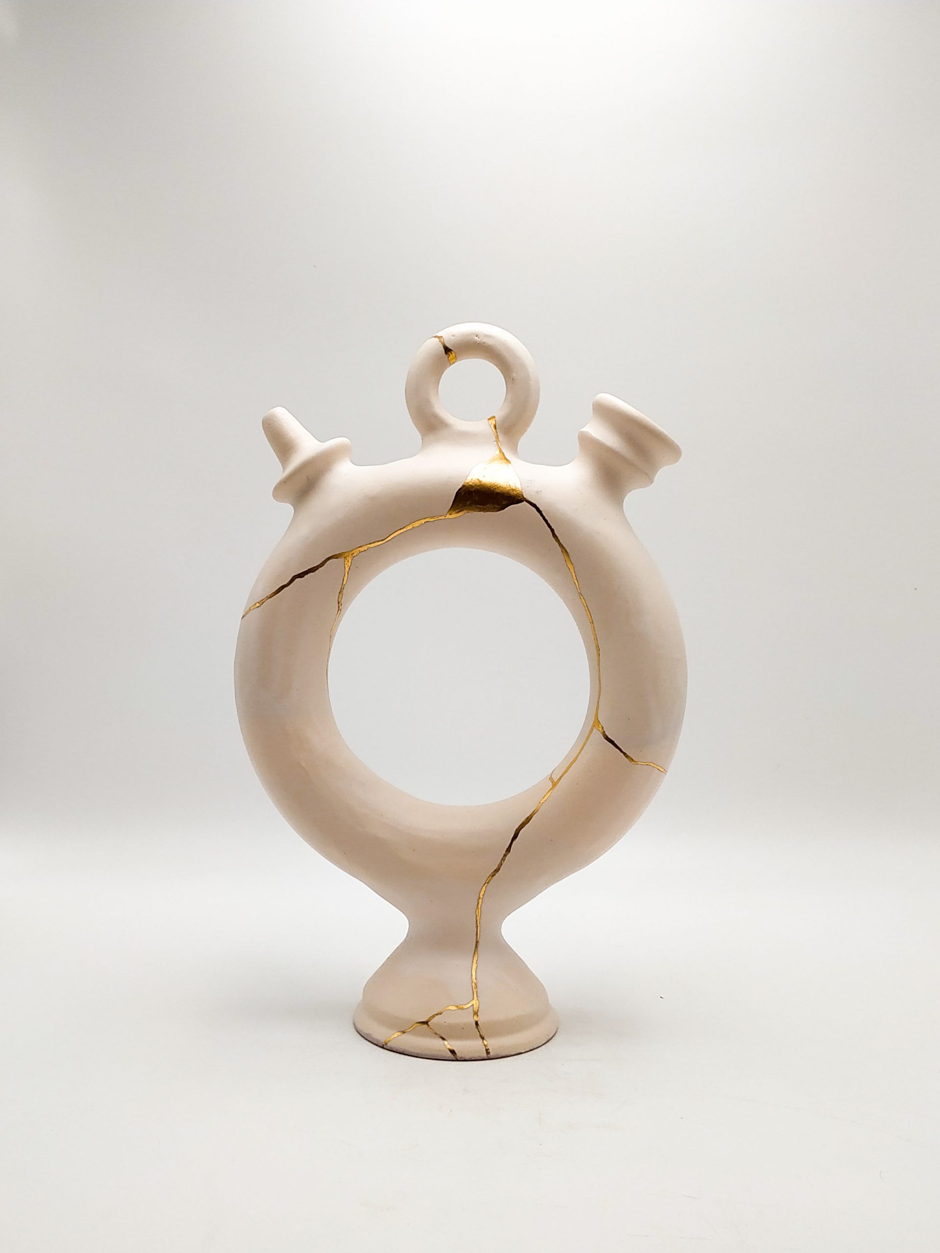 Botijo circular grande. Kintsugi. Decorado con esmalte. Hecho en torno alfarero. (37 cm altura)